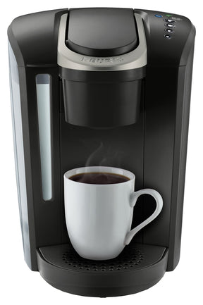 The newest addition to the Keurig single serve coffee maker family, the Keurig K-Select combines sleek design and simple button controls to help you brew your perfect cup every time. For coffee lovers that enjoy a bold brew, the strong brew button increases coffee's strength and intensity and the 52 oz water reservoir means you can brew five cups before refilling. Four cup sizes allow you to make 6, 8, 10 or 12 oz of your favorite beverages in under a minute, while the Quiet Brew Technology feature minimizes noise during use. Just pop in a pod and select your brew size to enjoy a perfect brew every time.