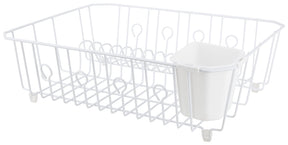 The Simple Spaces dish drainer with cutlery basket with steel wire frame measures 18 in L x 13-1/2 in W x 5-1/2 in H.