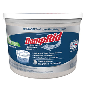 DampRid High-Capacity Moisture Absorber, 2 lb Net Content, Tub Container, Solid Form, Off-White/White, Compositions: Calcium Chloride, Sodium Chloride, Potassium Chloride, 2.15 Specific Gravity, 1000 sq-ft Coverage Area, Melting Point: 369 to 1420 deg F, 350 to 3500 deg F Boiling Point, 15.4 lb/gal Density