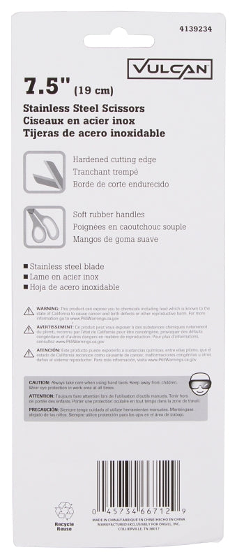 Vulcan JL-SR-07 Scissors, 7-1/2 in OAL, 2-1/4 in L Cut, Stainless Steel Blade, Blue/Gray Handle