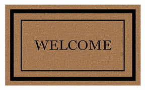 Fanmats Door Mat with Border, Black Flocked Pattern, Legend: Welcome, 30 in Length, 18 in Width, Coir Surface, Vinyl Backing, Outdoor Indoor/Outdoor, Resists: Fade, Mildew, Rot