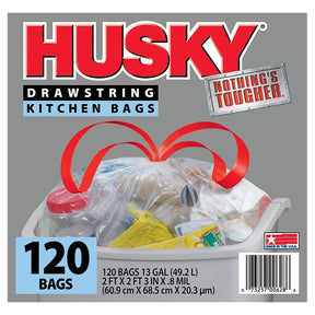 Husky HK13DS120C-P Kitchen Trash Bag, 13 gal Capacity, Polyethylene, Clear