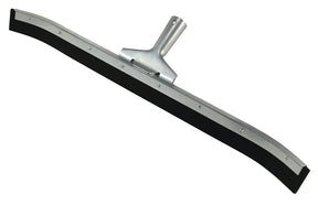 Curved floor squeegee made of anodized aluminum is durable and resists wear-and-tear over an extended period of time. This floor squeegee will easily move water, mud, debris and waste on concrete, asphalt and other floors. Rounded corners prevent injuries and gouging of baseboards, walls, furniture and machinery.