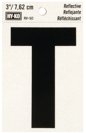 Hy-Ko RV-50 Series RV-50/T Self-Adhesive Reflective Letter, Character: T, 3 in H Character, Black Character, Vinyl, Pack of 10