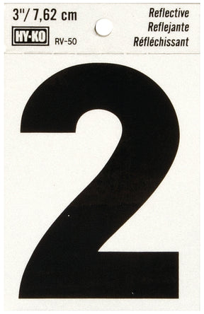 Hy-Ko RV-50 Series RV-50/2 Self-Adhesive Reflective Number, Character: 2, 3 in H Character, Black Character, Vinyl, Pack of 10 is backordered and will ship as soon as it is back in stock.