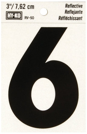 Hy-Ko RV-50 Series RV-50/6 Self-Adhesive Reflective Number, Character: 6, 3 in H Character, Black Character, Vinyl, Pack of 10