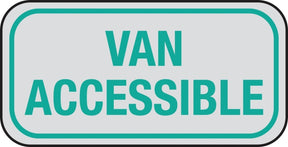 Reflective sign states "VAN ACCESSIBLE." Pre-punched holes for mounting.