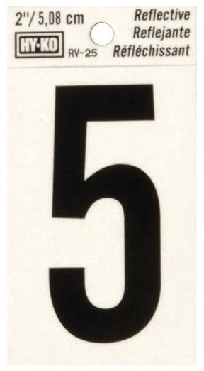 Hy-Ko RV-25/5 Reflective Sign, Character: 5, 2 in H Character, Black Character, Silver Background, Vinyl, Pack of 10 is backordered and will ship as soon as it is back in stock.