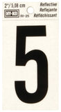 Hy-Ko RV-25/5 Reflective Sign, Character: 5, 2 in H Character, Black Character, Silver Background, Vinyl, Pack of 10