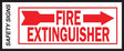 White sign with red letters states "FIRE EXTINGUISHER". Made of phosphorescent material with non-radioactive chemical that glows in total darkness after exposure to a light source. Self-adhesive.