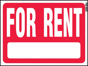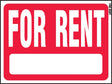 Weatherproof, red background with white lettering. Attractive and eye-catching. Can be used with FRAME-2. Sign states "FOR RENT".