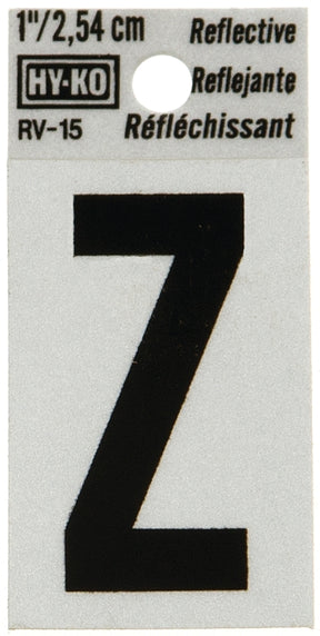 Hy-Ko RV-15/Z Reflective Letter, Character: Z, 1 in H Character, Black Character, Silver Background, Vinyl, Pack of 10 is backordered and will ship as soon as it is back in stock.