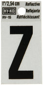 Hy-Ko RV-15/Z Reflective Letter, Character: Z, 1 in H Character, Black Character, Silver Background, Vinyl, Pack of 10