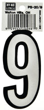 Hy-Ko PS-20/9 Reflective Sign, Character: 9, 3-1/4 in H Character, Black/White Character, Vinyl, Pack of 10