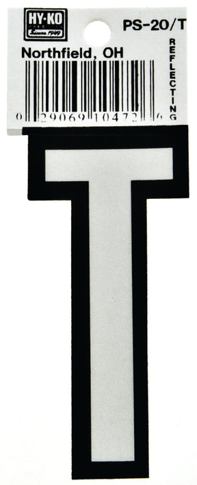 Hy-Ko PS-20/T Reflective Letter, Character: T, 3-1/4 in H Character, Black/White Character, Vinyl, Pack of 10