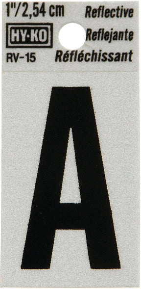 Hy-Ko RV-15/A Reflective Letter, Character: A, 1 in H Character, Black Character, Silver Background, Vinyl, Pack of 10