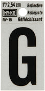 Hy-Ko RV-15/G Reflective Letter, Character: G, 1 in H Character, Black Character, Silver Background, Vinyl, Pack of 10