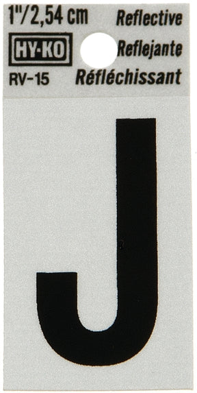 Hy-Ko RV-15/J Reflective Letter, Character: J, 1 in H Character, Black Character, Silver Background, Vinyl, Pack of 10 is backordered and will ship as soon as it is back in stock.