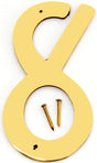 Hy-Ko BR-40 House Number, Character: 8, Character Height: 4 in, Character Width: 2-1/2 in, Character Finish: Polished Brass, Solid Brass, Dimensions: 6-3/4 in H x 3 in W, Includes: Screw Nail
