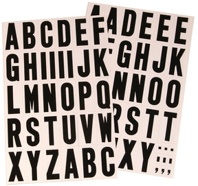 Hy-Ko Packaged Letter Set, Character Height: 1-3/4 in, Background Color: White, Character Color: Black, Vinyl, Dimensions: 7.72 in W x 11.66 in H, Includes: A to Z Letters, Dash, Comma, Period Symbol