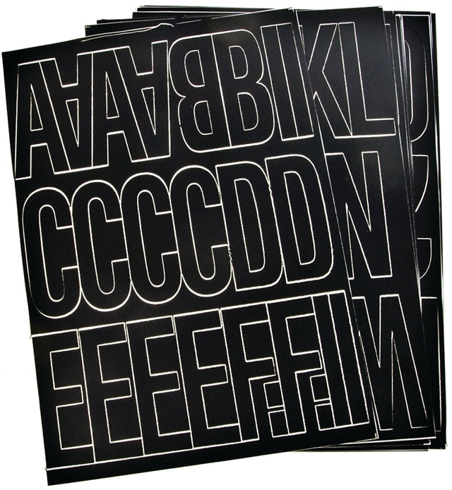 Hy-Ko 30035 Die-Cut Number and Letter Set, 3 in H Character, Black Character, Black Background, Vinyl