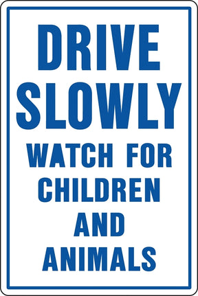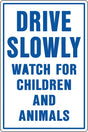 - Legend: DRIVE SLOWLY (Header) WATCH FOR CHILDREN AND ANIMALS