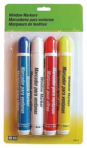 Hy-Ko 40613 Window Marker, Non-Toxic, Rain-Resistant, Blue/Red/White/Yellow, Pack of 3