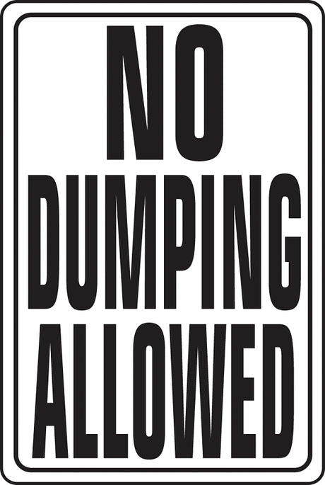 Hy-Ko HW-4 Parking Sign, Rectangular, NO DUMPING ALLOWED, Black Legend, White Background, Aluminum