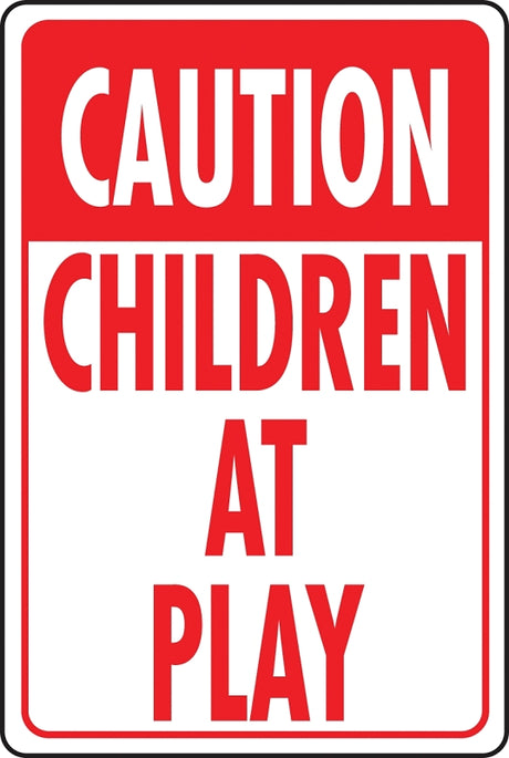 Hy-Ko HW-7 Traffic Sign, Rectangular, CHILDREN AT PLAY, Red Legend, White Background, Aluminum