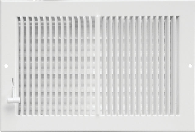 Imperial Multi-Shutter Sidewall/Ceiling Register, 2 Ways, 20 deg Air Deflection Angle, Louvered Faceplate Type, 8 in Duct Opening Width, 4 in Duct Opening Height, 1/3 in Blade Spacing, Steel, White, 9-1/4 in Length, 5-3/8 in Width, 1-7/8 in Height