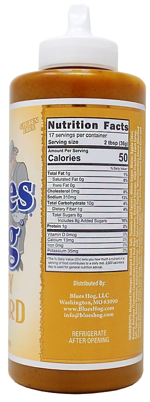 Blues Hog honey mustard is a thick, golden gourmet sauce that combines the sweet taste of honey with the zesty taste of prepared mustard. An exotic blend of spices nurtures the natural flavors of smoked meats. Blues Hog honey mustard is excellent as a dipping sauce, a basting sauce or even as a delicious salad dressing. Gluten-free.