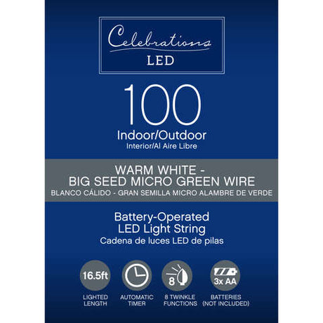 Celebrations LED Rice Compact Warm White 200 ct String Christmas Lights 16.4 ft., Pack of 12