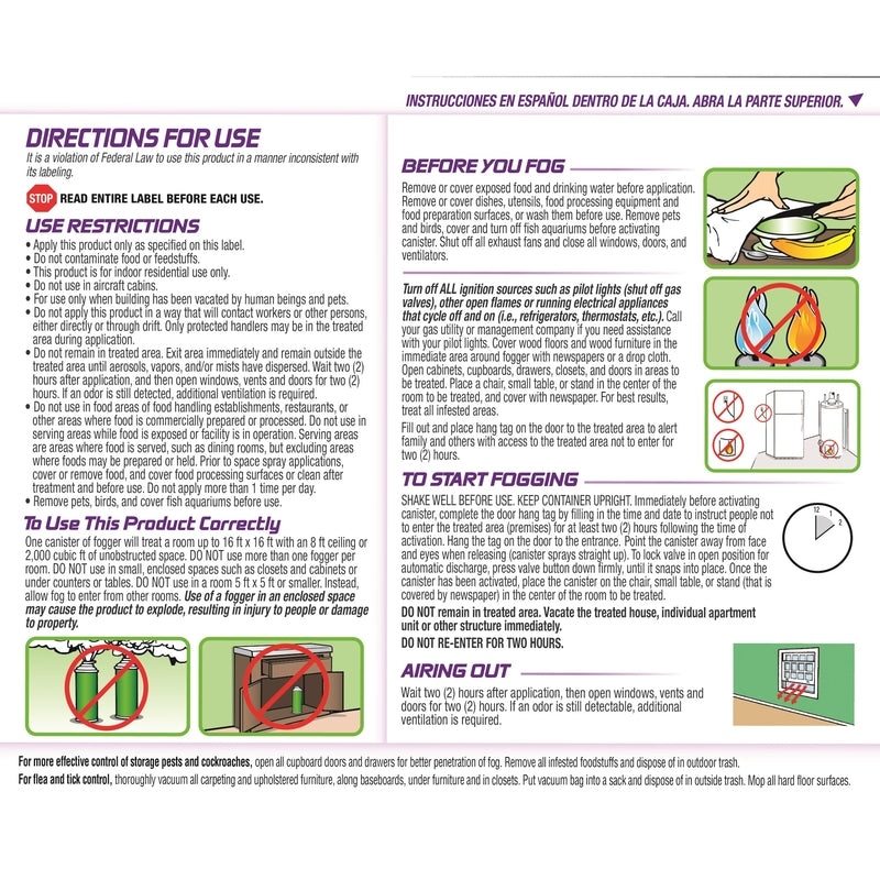 WHERE TO USE: Use indoors in enclosed spaces such as apartments, attics, basements, boats, cabins, closed porches, condos, garages, homes, kitchens and pet sleeping areas