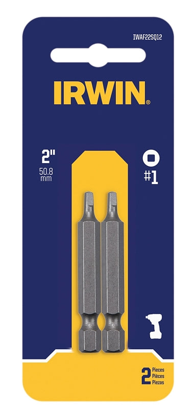 Irwin IWAF22SQ12 Power Bit, #1 Drive, Square Drive, 1/4 in Shank, Hex Shank, 2 in L, Steel