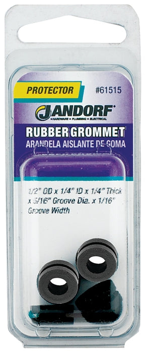 Jandorf 61515 Grommet, 1/4 in ID, 1/2 in OD, Rubber, Black, 1/4 in Thick Panel