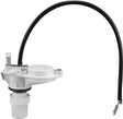 Features low-profile design, twist knob adjustment for water level control. Includes metal refill tube clip, rubber cone washer, rubber refill tube, plastic lock nut, plastic washer. Fits standard two-piece toilets.