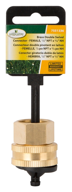 Landscapers Select GHADTRS-8 Swivel Hose Connector, 1/2 x 3/4 in, FNPT x FNH, Brass, Brass