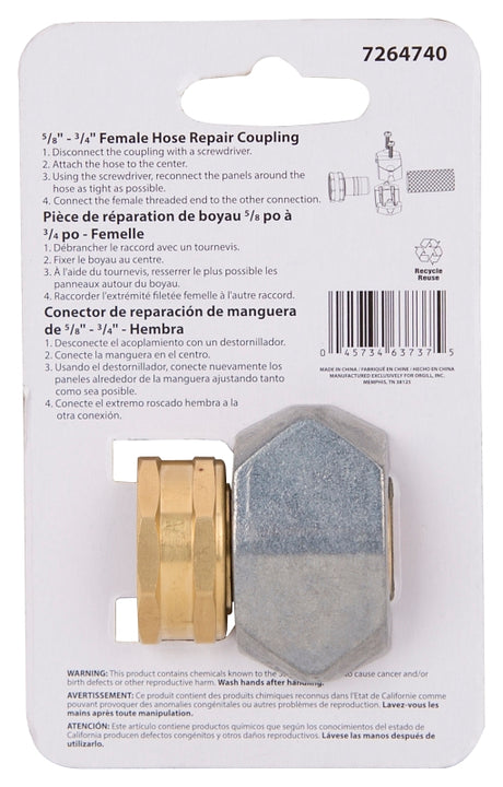 Landscapers Select GC533 Hose Coupling, 5/8 to 3/4 in, Female, Brass, Brass/Silver