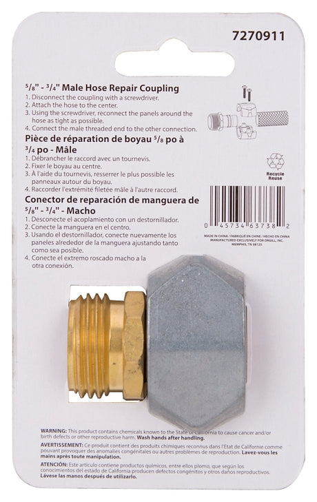 Landscapers Select GC534 Hose Coupling, 5/8 to 3/4 in, Male, Brass, Brass/Silver