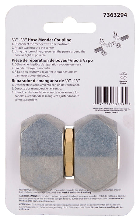 Landscapers Select GC535 Hose Mender, 5/8 to 3/4 in, Brass, Brass/Silver