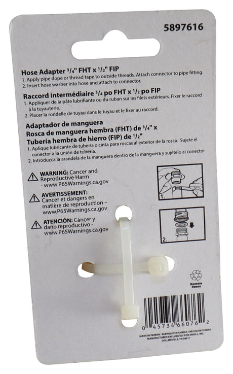 Landscapers Select PMB-059LFBC Hose Adapter, 3/4 x 1/2 in, FHT x FIP, Brass, Brass, For: Garden Hose