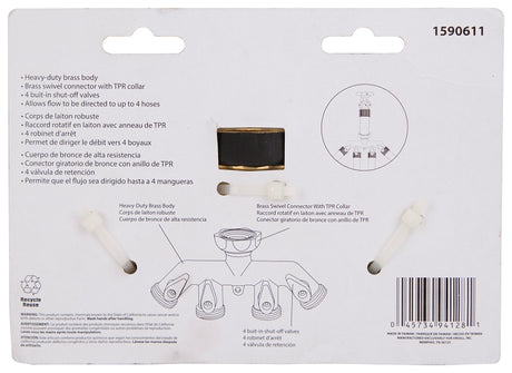 Landscapers Select YM20820 Tap Manifold Connector, 4 Way, Black/Yellow, Pack of 8