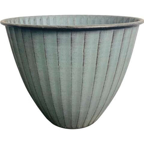 This 8" Monroe Ironstone planter is a one-piece planter with a beautiful sandstone texture and finish. Made of repurposed automotive steel from a car door factory, it is pressed into shape and spun and has no seams or welds to leak or rust. It is powder-coat painted three times with our exclusive Ironstone finish, a three-stage finish that includes a base, a hand-brushed two-tone and a sandstone texture coat.