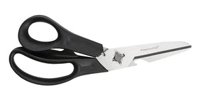 Cut open a wide range of heavy-duty garden materials including fertilizer bags, landscape fabric, screens and more with the multi-use Fiskars multi-purpose garden shears. From cutting bed lining to adding mulch, prepping and maintaining a strong foundation is key to a healthy garden and can involve a variety of arduous tasks - all of which rely on retaining blade sharpness. This versatile tool features ergonomically sculpted handles and fully hardened, precision-ground, steel blades that cut all the way to the tip and stay sharp through heavy-use. Other features include a power notch to cut light rope, wire and twine cutters, a pointed awl tip for piercing small holes in cardboard and leather and a bottle opener. The shears can also be taken apart, leaving you with a titanium-enhanced knife for cutting large objects. A sheath for safe transport and storage comes with a built-in tape cutter and ceramic scissors sharpener.
