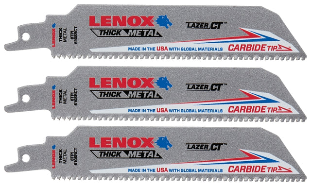 Lenox Reciprocating Saw Blade, Cutting Edge Material: Carbide, Teeth per Inch: 8, 6 in L, 1 in W, 0.052 in Thick, Applicable Materials: Cast Iron, Stainless Steel