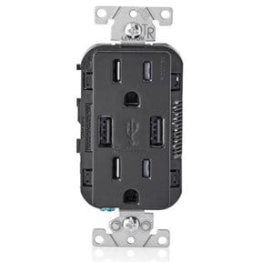 Leviton Decora 15 amps 125 V Duplex Black Outlet and USB Charger 5-15R 1 pk