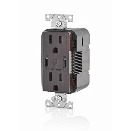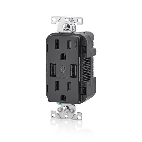 Leviton Decora 15 amps 125 V Duplex Black Outlet and USB Charger 5-15R 1 pk