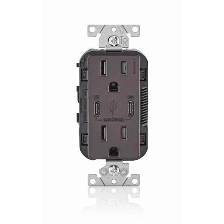 Leviton Decora 15 amps 125 V Duplex and Type C White Outlet and USB Charger 5-15 R 1 pk