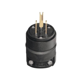 Leviton Electrical Plug, Straight Blade, 125 V, 15 A, Number of Poles: 2, Number of Wires: 3, Cable/Wire Size: 15/64 to 45/64 in, Grounding Type: Grounded, Operating Temperature: -40 to 60 deg C, Cord Mounting, Rubber, Black, Dimensions: 2.77 in L x 1.54 in W, NEMA Configuration: NEMA 5-15P