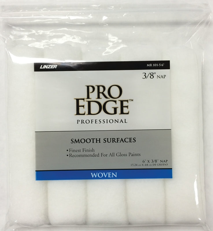 Linzer MR 101-5 6IN Paint Roller Cover, 3/8 in Thick Nap, 6 in L, Fabric Cover, White